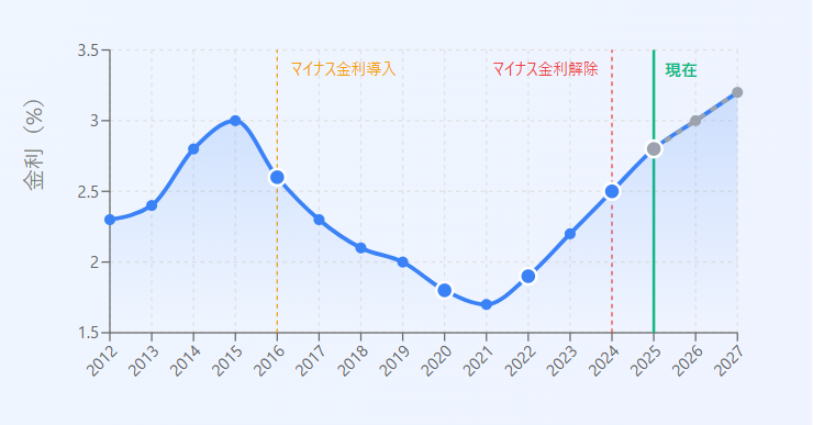 2025年以降のアパートローン金利は、緩やかな上昇傾向が続くと予測されます。