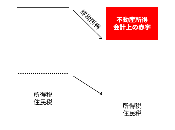 不動産の長期譲却所得の税率が約20%であることを踏まえると、その差は20%以上となり、損益通算による税額の軽減効果が大きくなります。