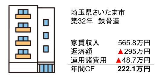 そこで節税効果を検討したうえで、埼玉県さいたま市の築32年の中古鉄骨造アパートを6900万円でご購入。