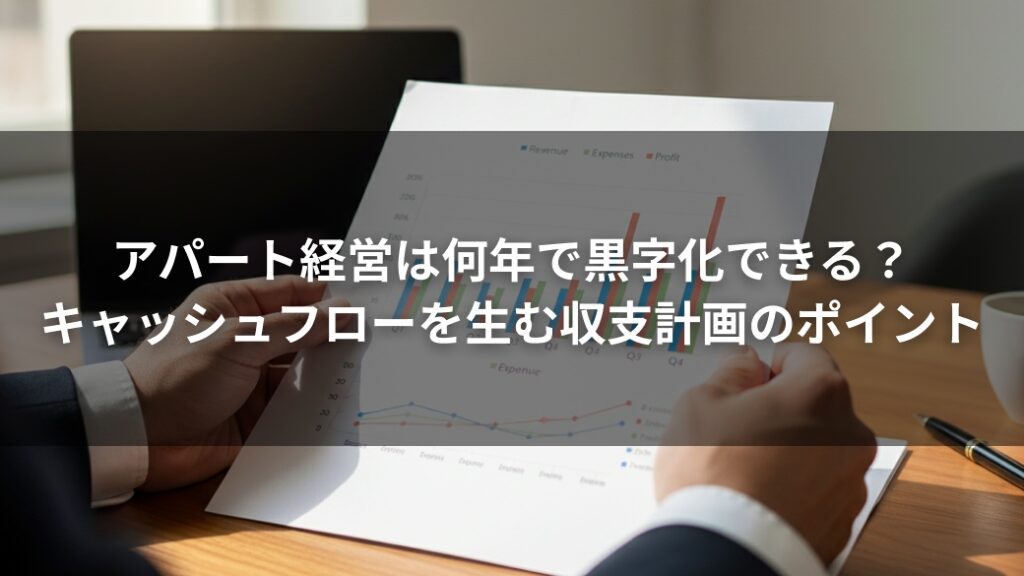 アパート経営の黒字化は、物件の利回りだけで決まるものではなく、融資条件、税金、将来の修繕、そして売却までを見据えた総合的な収支計画に基づいています。 計画の精度が、経営の成否を大きく左右するといっても過言ではありません。